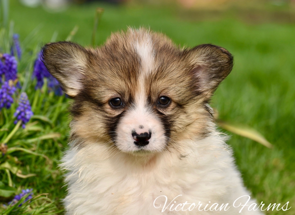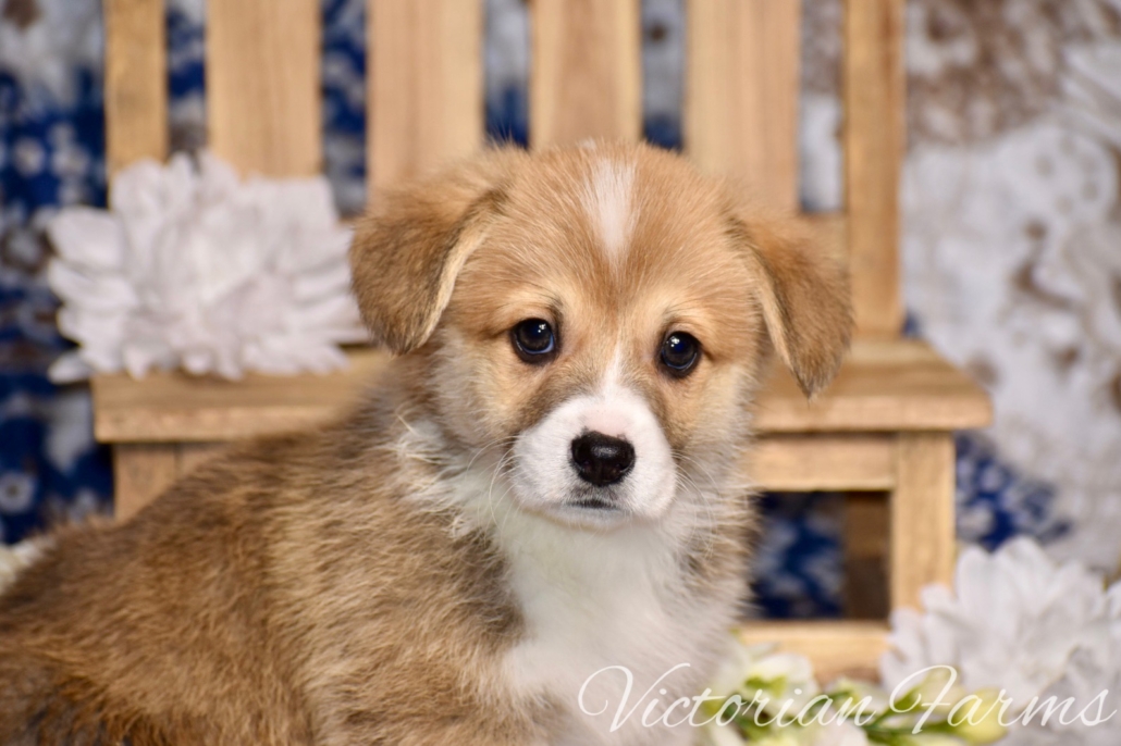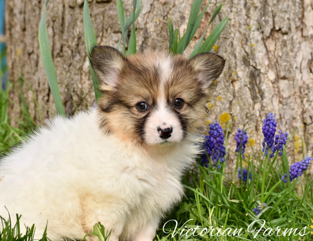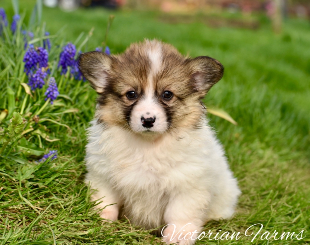 Stunning litter of Fluffy coat AKC Pembroke Welsh Corgis born 2/21/26. These puppies will be 8 weeks old 4/18/26. All puppies will be red or sables. This is our first pairing with piebald (high white mismarks)! The piebald coloration is due to a naturally occurring, recessive, gene in the breed (s-locus). This does not cause any health issues to the puppies and sure makes for some unique and gorgeous babies! All puppies have had their tails docked and dew claws removed, will have a vet health exam, deworming bi weekly, age appropriate vaccines, microchipped with all expenses paid and will be litter box trained. Puppies will be very well socialized with children, cats and dogs.