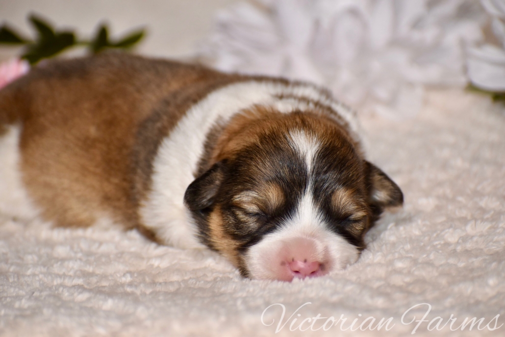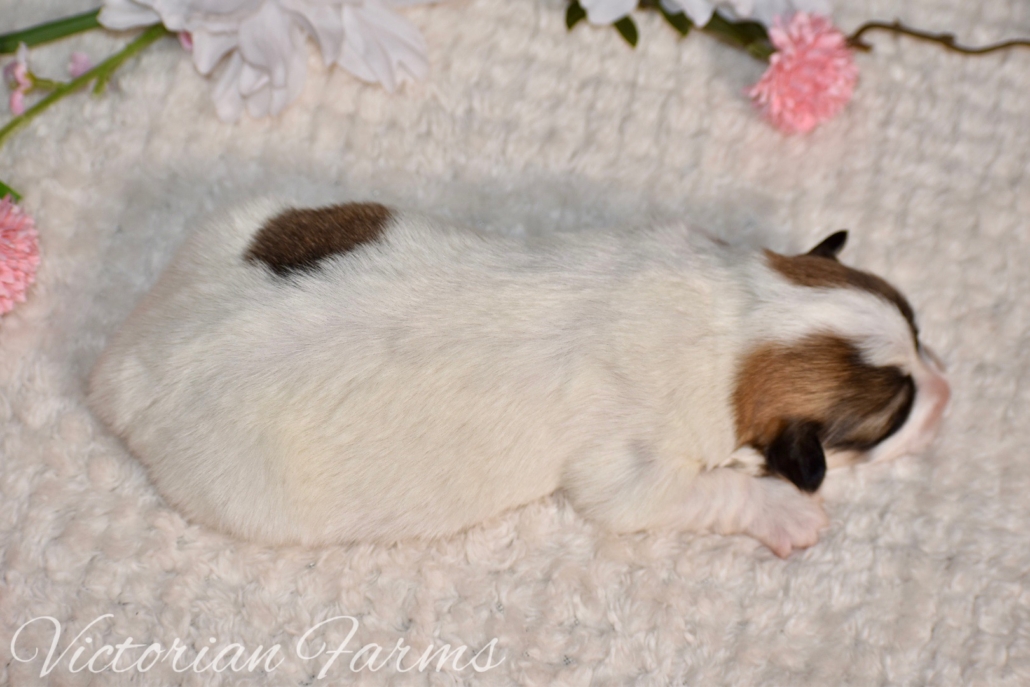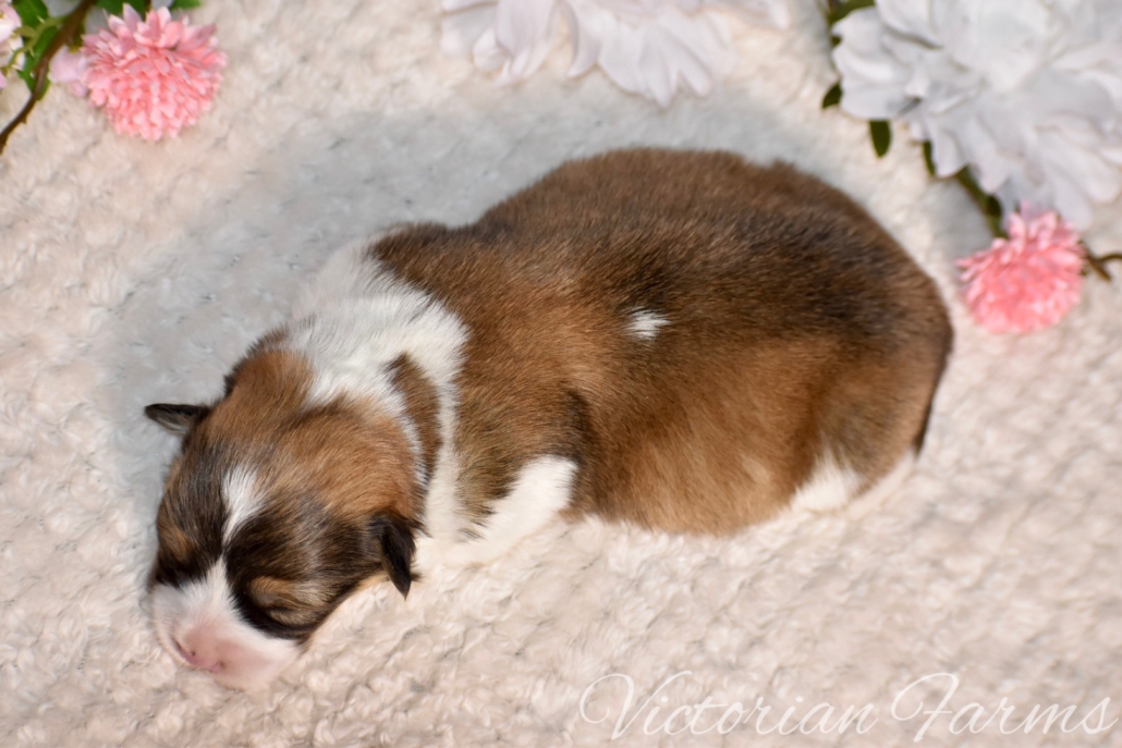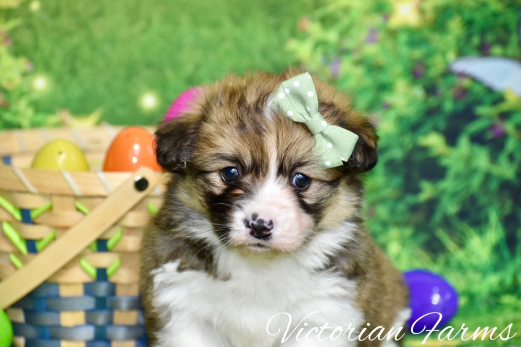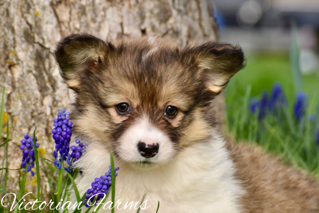 Stunning litter of Fluffy coat AKC Pembroke Welsh Corgis born 2/21/26. These puppies will be 8 weeks old 4/18/26. All puppies will be red or sables. This is our first pairing with piebald (high white mismarks)! The piebald coloration is due to a naturally occurring, recessive, gene in the breed (s-locus). This does not cause any health issues to the puppies and sure makes for some unique and gorgeous babies! All puppies have had their tails docked and dew claws removed, will have a vet health exam, deworming bi weekly, age appropriate vaccines, microchipped with all expenses paid and will be litter box trained. Puppies will be very well socialized with children, cats and dogs.